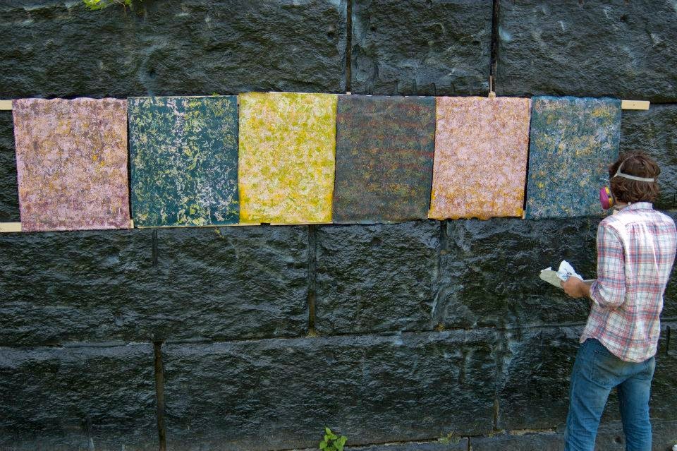 AiO is a juried art event celebrating the way artists interact with their urban environment. The selected group of artists are invited to take their studio practice outside to produce work in the open, create a temporary presentation, and interact with visitors. It took place May 16-18 along the Schuylkill Banks. This was the second time I participated. I made spray paintings on canvas mimicking natural patterns and textures with an unnatural medium, then installed them on an existing free-standing wall that was once the base of a bridge. My goal was to accent the wall with the size, color, and patterns of the paintings in order to have the wall itself become an art object.